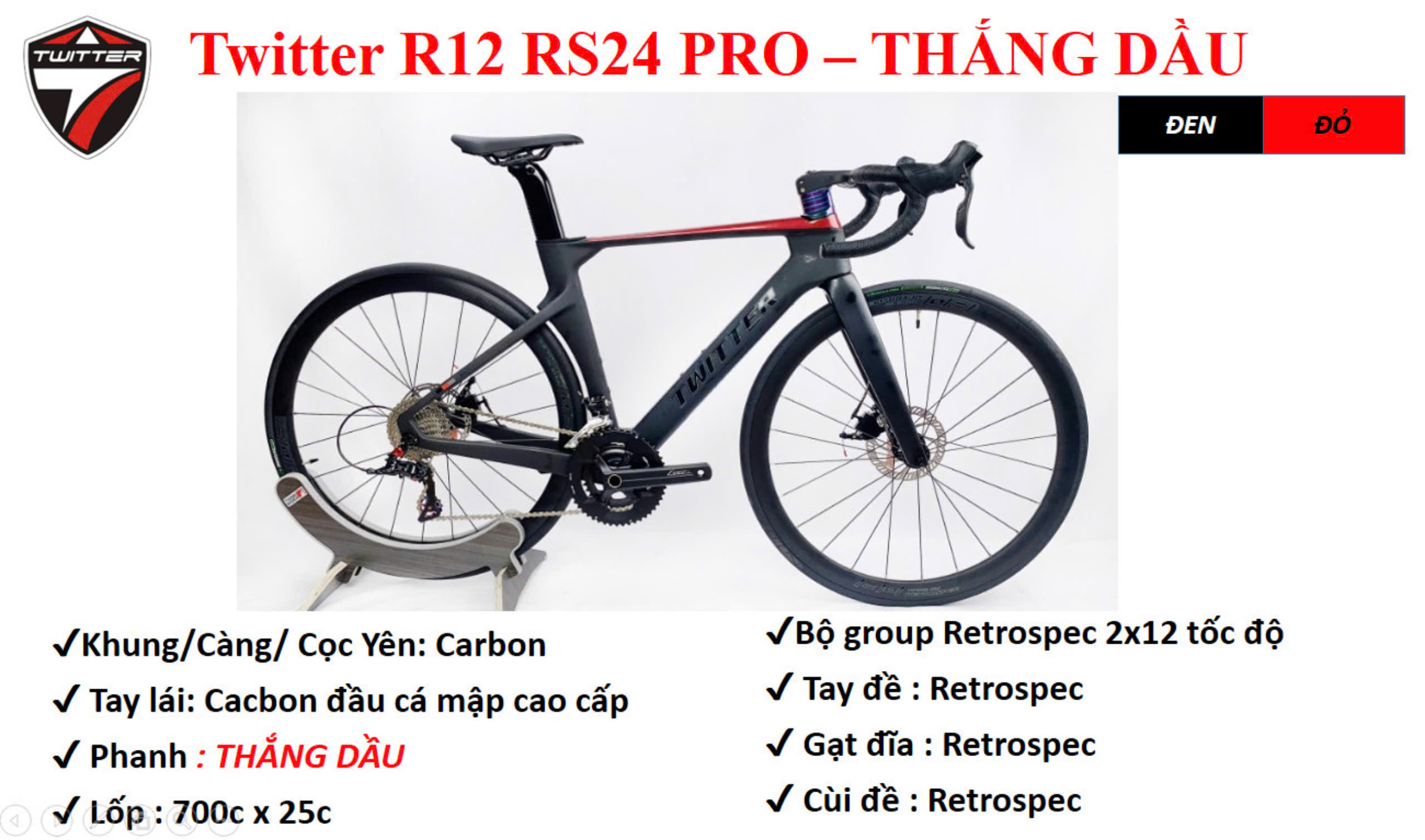 TWITTER R12 RS24 PRO – CARBON – PHANH DẦU – 2X12 RETROSPEC – 2025